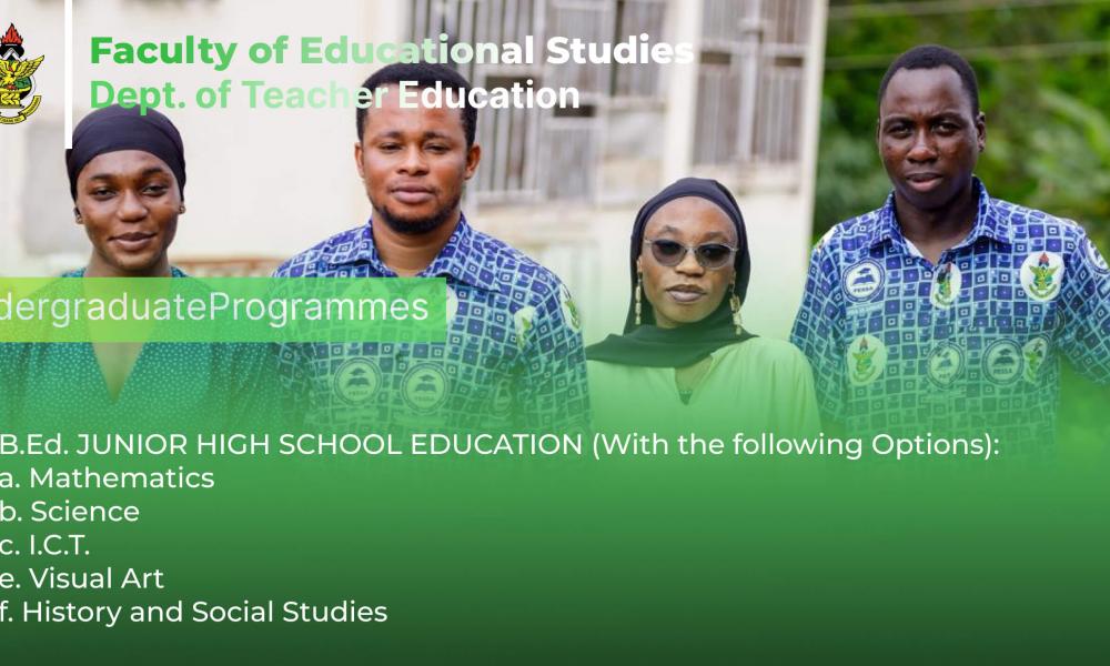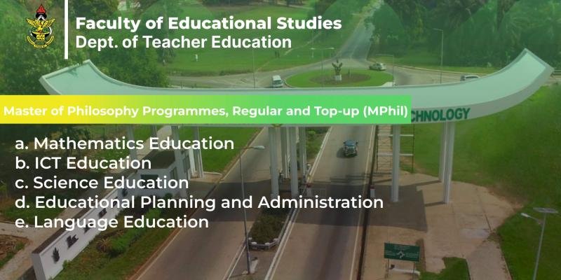 Welcome to the Department of Teacher Education at Kwame Nkrumah University of Science and Technology (KNUST), Kumasi, Ghana. The department complements academic excellence with a strong commitment to intellectual curiosity and student success. We pride ourselves on a team of highly qualified faculty members, each holding terminal degrees in their respective disciplines. Our department brings a wealth of research experience and innovative teaching methods that enrich every student's academic journey through our doors.